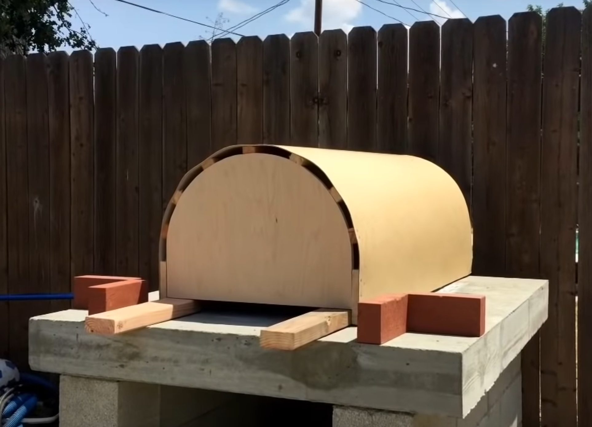 خلال اليوم الانتظار لجفاف القاعدة الخاصة بالفرن الحجري نقوم بتجهيز قالب من الخشب لنقوم ببناء بيت النار لـ الفرن الحجري بقياس مناسب للقاعدة الخاصة بالفرن التي قمنا ببناءها التي يكون ابعادها 120 120 xعلى النحو التالي: